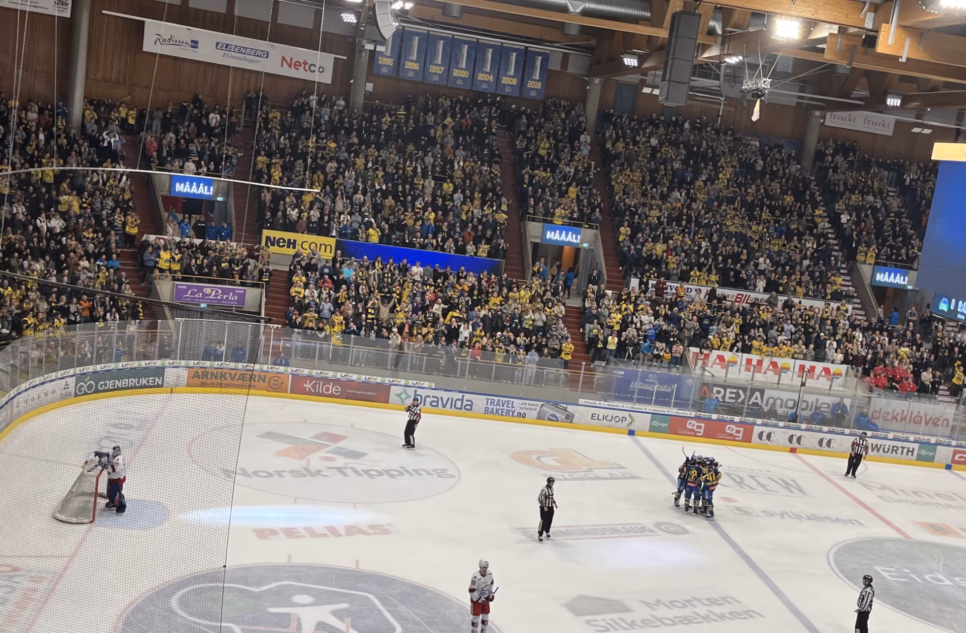 Det var komfortabel stemning i hallen etter første periode, men 35 sekunder ut i midtperioden kunne det fullsatte bortefeltet juble.